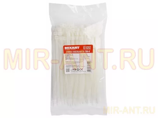 Хомут нейлоновый (кабельная стяжка) 200х7,6 мм белый REXANT предназначен для крепления или обвязки в жгут кабелей и проводов, крепления гибких гофротруб, а также других предметов к несущей поверхности или для соединения между собой. Такая стяжка используется при проведении электромонтажных работ, при монтаже структурированных кабельных систем, для бытовых нужд, а также в других отраслях народного хозяйства.