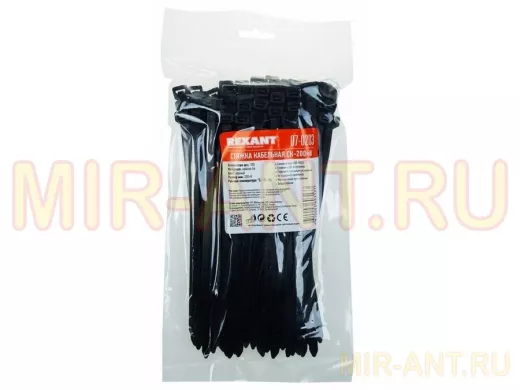 Хомут нейлоновый (кабельная стяжка) 200х7,6 мм чёрный REXANT предназначен для крепления или обвязки в жгут кабелей и проводов, крепления гибких гофротруб, а также других предметов к несущей поверхности или для соединения между собой. Такая стяжка используется при проведении электромонтажных работ, при монтаже структурированных кабельных систем, для бытовых нужд, а также в других отраслях народного хозяйства.
