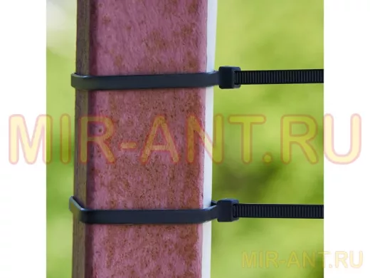 Представляет собой гибкую полоску из нейлона высокой прочности (полиамид-6,6) с замком на конце. Полиамид-6,6 – кристаллизующийся конструкционный материал, имеющий высокую твердость и механическую прочность, отличающийся высокими электроизоляционными свойствами. Простой и удобный монтаж осуществляется вручную следующим образом: большим пальцем левой руки прижать замок к пучку, а правой рукой затягивайте петлю, либо с помощью специального инструмента REXANT арт.12-4521 или 12-4541 (вставить конец затяжки в замок и затянуть до полной фиксации пучка, после чего отрезать выступающую часть бандажа).