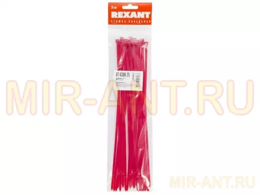 Хомут нейлоновый (кабельная стяжка) 300 х 4,8 мм, красный, REXANT предназначен для крепления или обвязки в жгут кабелей и проводов, крепления гибких гофротруб, а также других предметов к несущей поверхности или для соединения между собой. Такая стяжка используется при проведении электромонтажных работ, при монтаже структурированных кабельных систем, для бытовых нужд, а также в других отраслях народного хозяйства. Представляет собой гибкую полоску из нейлона высокой прочности (полиамид-6,6) с замком на конце. Полиамид-6,6 – кристаллизующийся конструкционный материал, имеющий высокую твердость и механическую прочность, отличающийся высокими электроизоляционными свойствами. Простой и удобный монтаж осуществляется вручную следующим образом: большим пальцем левой руки прижать замок к пучку, а правой рукой затягивайте петлю, либо с помощью специального инструмента REXANT арт.12-4521 или 12-4541 (вставить конец затяжки в замок и затянуть до полной фиксации пучка, после чего отрезать выступающую часть бандажа).