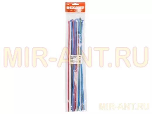 Хомут нейлоновый (кабельная стяжка) 400 х 4,8 мм, цветные, REXANT предназначен для крепления или обвязки в жгут кабелей и проводов, крепления гибких гофротруб, а также других предметов к несущей поверхности или для соединения между собой. Такая стяжка используется при проведении электромонтажных работ, при монтаже структурированных кабельных систем, для бытовых нужд, а также в других отраслях народного хозяйства. Представляет собой гибкую полоску из нейлона высокой прочности (полиамид-6,6) с замком на конце. Полиамид-6,6 – кристаллизующийся конструкционный материал, имеющий высокую твердость и механическую прочность, отличающийся высокими электроизоляционными свойствами. Простой и удобный монтаж осуществляется вручную следующим образом: большим пальцем левой руки прижать замок к пучку, а правой рукой затягивайте петлю, либо с помощью специального инструмента REXANT арт.12-4521 или 12-4541 (вставить конец затяжки в замок и затянуть до полной фиксации пучка, после чего отрезать выступающую часть бандажа).