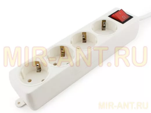 Сетевой удлинитель Гарнизон ELB-G4-W-5, 4 евророзетки с выключателем и заземлением - MIR-ANT.RU