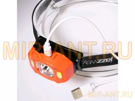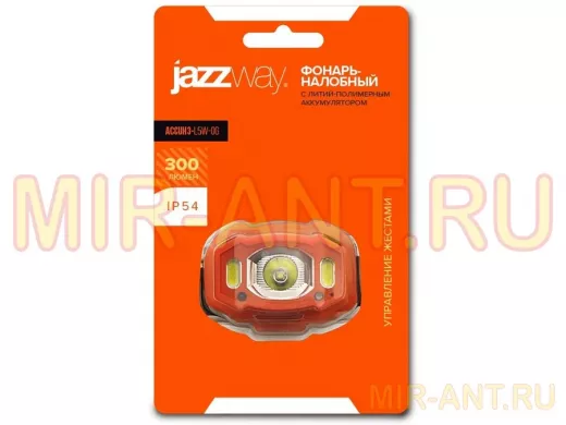 Фонарь Jazzway AccuH3- L5W-og налобный оранж ( Micro USB, 300 Лм, IP54, литий-полимерный аккумулято - MIR-ANT.RU