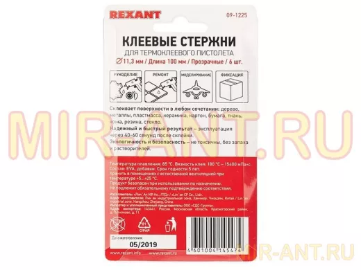 Клеевой стержень состоит из смолы ЭВА, поэтому он нетоксичен, не выделяет запахов и не содержит в своем составе растворителей.