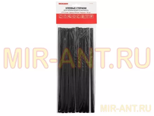 Клеевые стержни d=11,3 мм, L=270 мм, черные (упак. 10 шт.) REXANT
