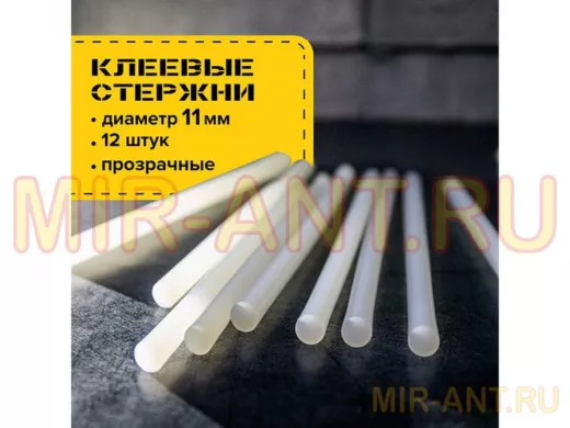 Термоклей прочно и быстро скрепит различные материалы: бумагу, дерево, картон, стекло, пластмассу, металл, кожу, синтетические волокна и т. д. Диаметр клеевого стержня 11 мм и длина 20 см являются самыми востребованными параметрами для выполнения работ. Цвет клеевого стержня белый. В комплект входит 12 клеевых стрежней, обеспечивающих непрерывный рабочий процесс.