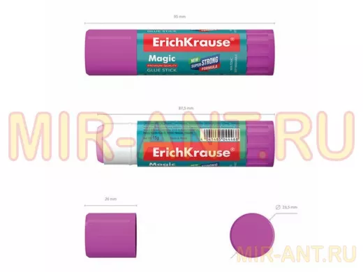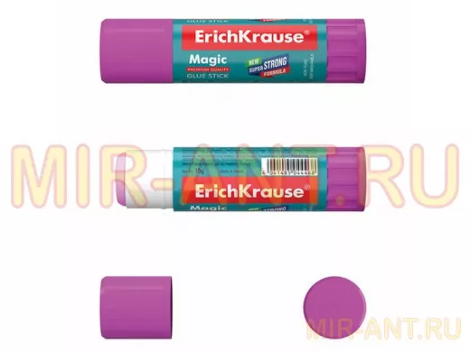 Клей-карандаш ERICH KRAUSE с клеящим полимерным компонентом подкрашен пигментом, который обесцвечивается при контакте с воздухом. Слой клея на бумаге хорошо виден, что помогает наносить клей предельно точно и аккуратно.