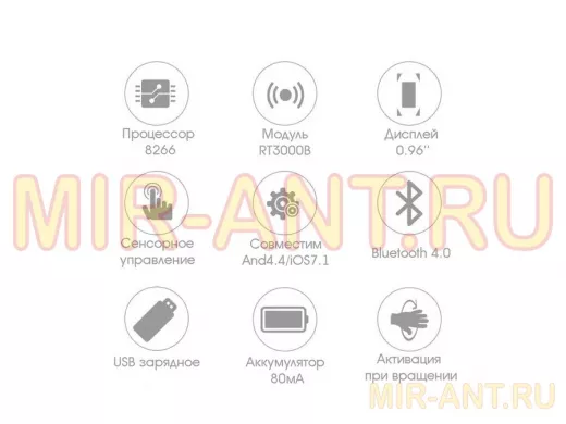 • ЖК дисплей 0.96" (160*80) сенсорное управление одной кнопкой