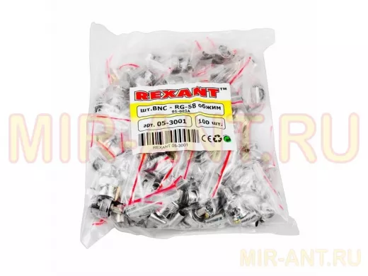 Разъем штекер BNC RG-58 обжим REXANT предназначен для подключения коаксиального кабеля c волновым сопротивлением 50 или 75 Ом к видеокамерам, видеорегистраторам, мониторам и другим радиоэлектронным устройствам. BNC-коннектор (BNC сокр. от Bayonet Neill Concelman) обжимной - электрический разъем с байонетной фиксацией закрепляется на кабеле обжимом с помощью специализированных клещей для коаксиальных кабелей. Такое соединение обеспечит безопасную, качественную и долговечную эксплуатацию видеоаппаратуры.