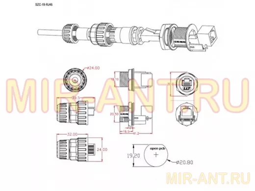SZC-19-RJ45 ip68 Герметичные разъемы SZC РАЗЪЕМЫ - MIR-ANT.RU