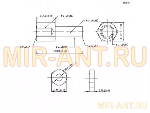 болт с гайкой #4-40 UNC х 2; шайба гроверная х 2