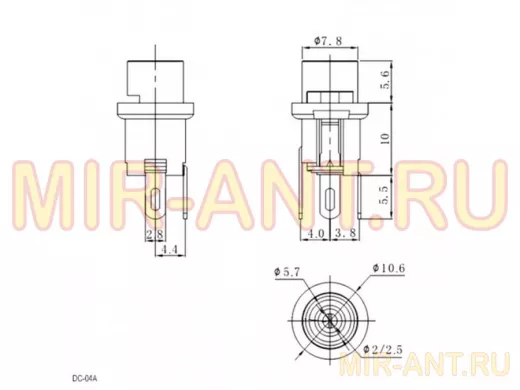 Ф центрального контакта - 1,7; внутр. Ф кругового контакта - 5,7 мм