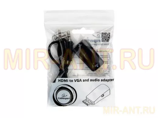 Переходник HDMI штекер / VGA гнездо Cablexpert A-HDMI-VGA-02, 19M/15F, Jack3.5 выход, из HDMI в VGA - MIR-ANT.RU