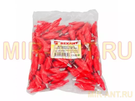Зажим "крокодил" красный 5А (56мм) в изоляторе (FD1703) REXANT