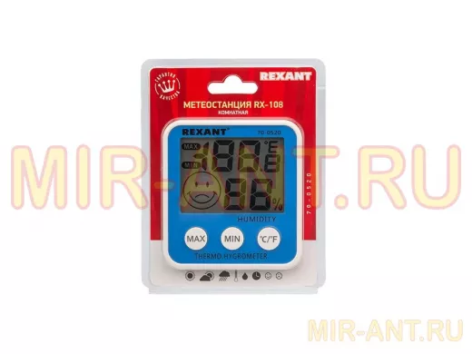 Комнатная метеостанция предназначена для измерения показаний температуры и влажности в помещении. Регистрирует в памяти максимальное и минимальное значения температуры и влажности. Отображает общий уровень метеокомфорта в помещении. Имеет настольную подставку и магнитное крепление.