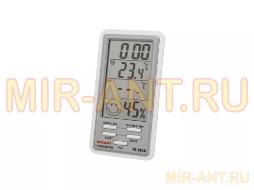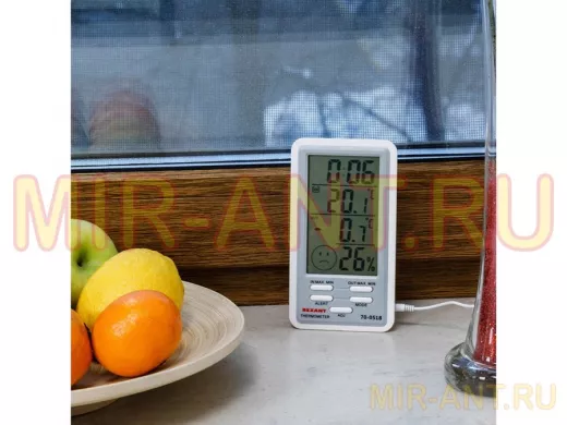 Комнатная метеостанция предназначена для измерения показаний температуры и влажности в помещении. Регистрирует в памяти максимальное и минимальное значения температуры и влажности. Отображает общий уровень метеокомфорта в помещении. Имеет настольную подставку и магнитное крепление.