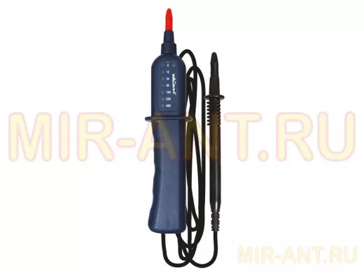 Тестер для ступенчатой индикации наличия и величины напряжения в цепях электропитания. Индикация наличия напряжения постоянного и переменного тока. Чувствительный детектор напряжения, легкий и безопасный в использовании прибор позволяет проверить заряд аккумуляторной батареи, автомобиля, мотоцикла и т.д. Дискретная индикация величин напряжения постоянного и переменного тока с пороговыми значениями: 6, 12, 24, 50, 120, 230, 400В. Максимально допустимое напряжение - 400В. Тест на полярность: положительный и отрицательный