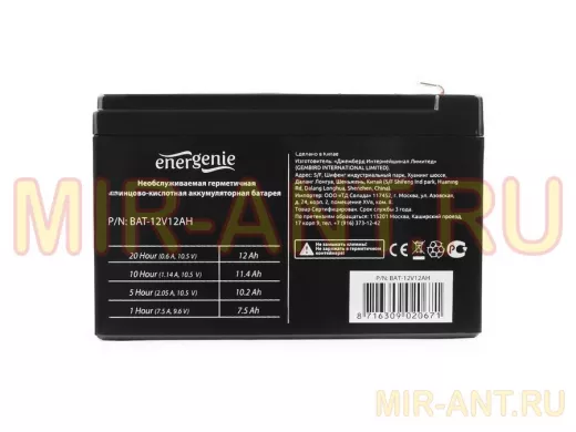 Аккумулятор 12 А/ч 12В для Источников Бесперебойного Питания Energenie BAT-12V12AH BAT-12V12AH - MIR-ANT.RU