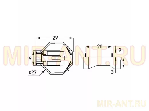 - Габаритные размеры: 25 х 22 х 9мм (подробнее см. схему)