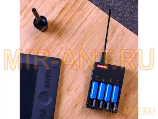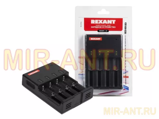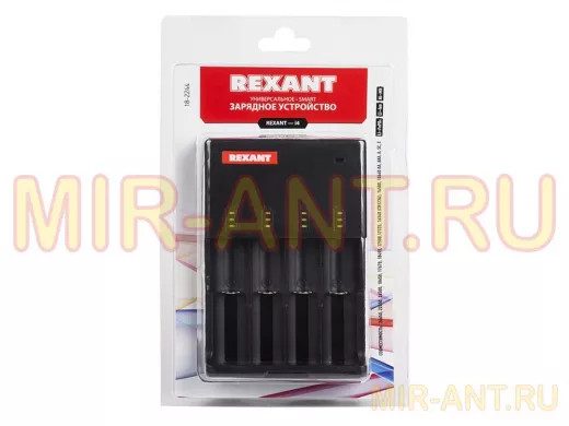Универсальное SMART зарядное устройство Rexant способно заряжать одновременно до 4 аккумуляторов различного типа.