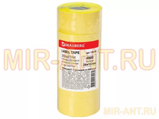Этикет-лента 26*16мм прямоугольная, желтая, КОМПЛЕКТ 5 рулонов по 800 шт. "BR-79138" - MIR-ANT.RU