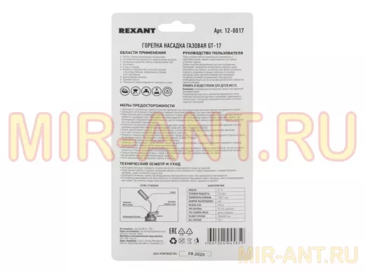 Перед началом работы с газовой горелкой REXANT необходимо ознакомиться с мерами предосторожности и инструкцией по эксплуатации на упаковке горелки!