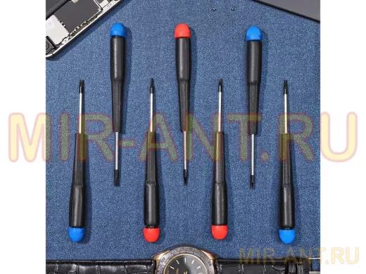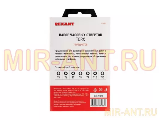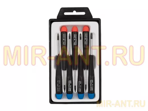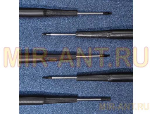 Набор часовых отверток "TORX" ht-5214 REXANT предназначен для выполнения высокоточных работ в часовых механизмах, компьютерной технике, теле и радиоаппаратуре, а также для ремонта и обслуживания мобильных телефонов. Отвертки изготовлены из высококачественной легированной стали с дополнительно термообработанными (для повышения износостойкости) наконечниками. Обрезиненная рукоятка с свободно вращающимся затыльником, обеспечивающим удобство при заворачивании микровинтов. В набор входят 7 отверток: Т5, Т6, Т7, Т8, Т9, Т10, Т15. Поставляется в пластиковой коробке с ложементом.