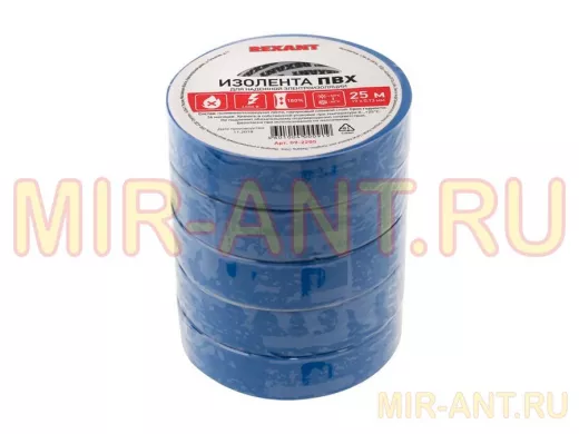 Изолента 19 мм х 25 м синяя REXANT эластична — способна растягиваться на 150 %, плохо рвется, устойчива к погодным явлениям, обладает высокими диэлектрическими свойствами и хорошей адгезией (скрепляет поверхности). Главными свойствами этого материла является способность герметизировать, защищать от влаги, слабых растворителей и солей.