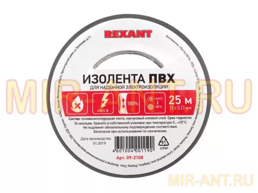 Изолента 15мм х 25метров серая REXANT - MIR-ANT.RU