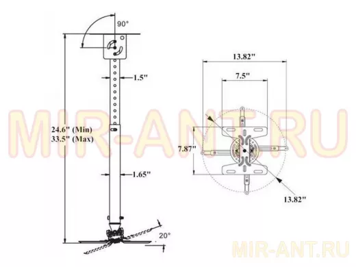Кронштейн NBT718-2 для проэктора потолочный, нагрузка 13 кг, от потолка 53-83 см. С наклоном и пово - MIR-ANT.RU