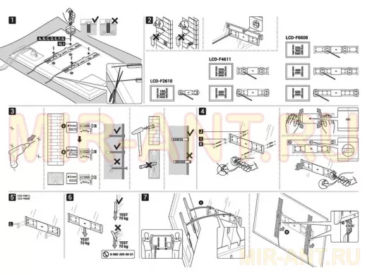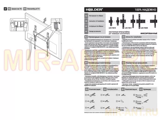 Кронштейн крепится к стене на 4 винта. Также в конструкции предусмотрены 4 дополнительных страховочных отверстия.