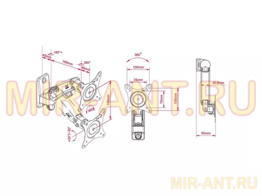 Кронштейн NB F120 chrome с газлифтом 17"-27" до 7кг - MIR-ANT.RU
