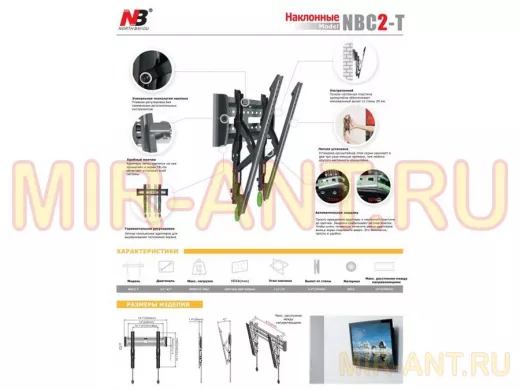 Кронштейн NB C2-T Диагональ монитора: 32-47" до 50кг.Угол наклона: -0/+12VESA: 100x100400x400mm. - MIR-ANT.RU