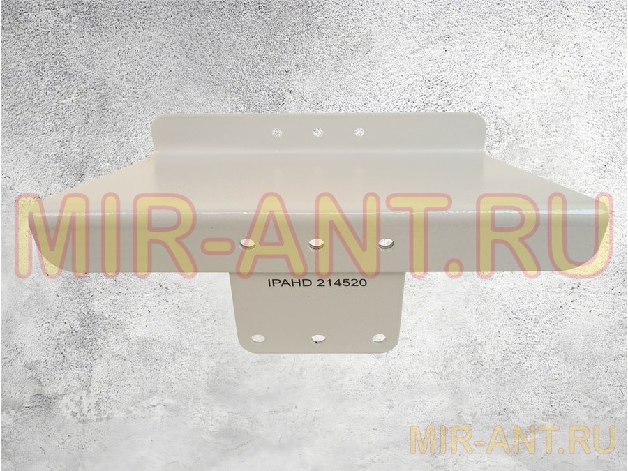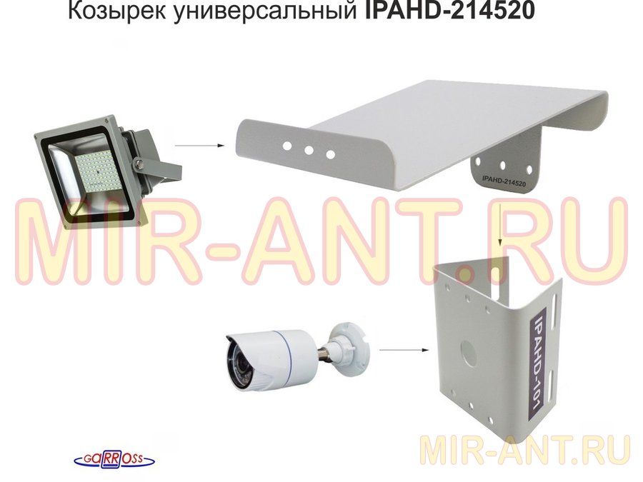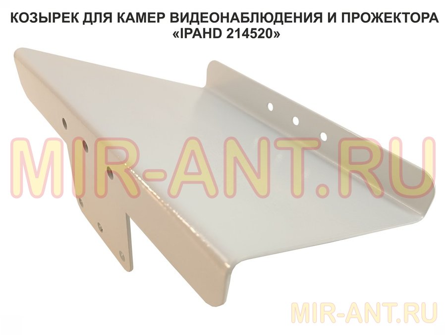 • Кронштейн-козырек крепится на стену и кронштейны на столб серии IPAHD для видеокамер, оснащенные тремя отверстиями для креления опций. На козырьке спереди есть три отверстия для крепления прожектора