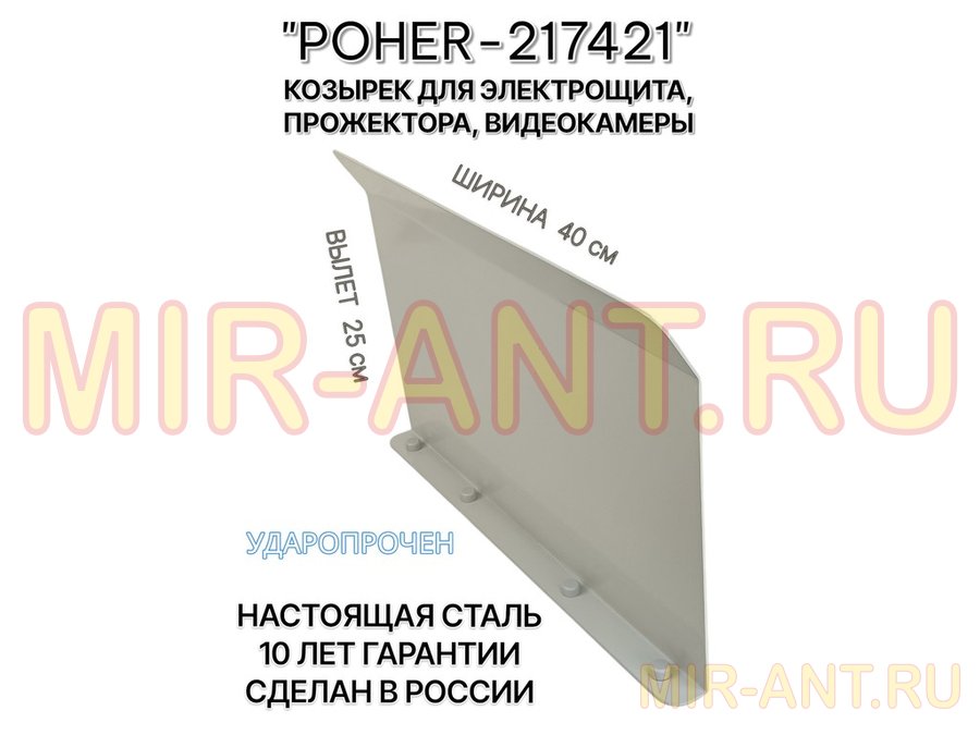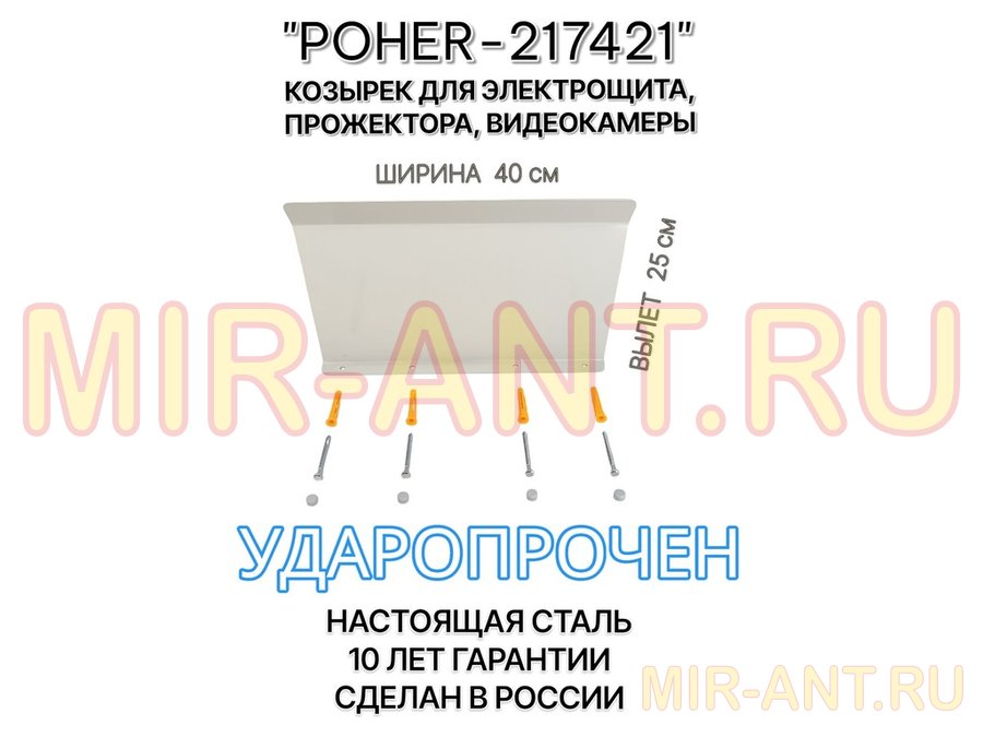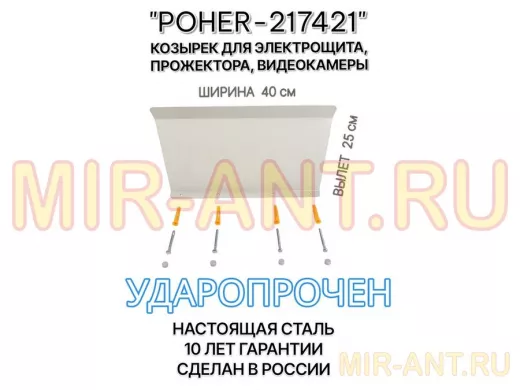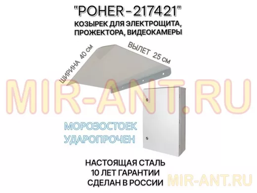"POHER-217421" козырёк для защиты приборов и устройств от дождя и сосулек, ширина 41 см, вылет 27 см, стальной