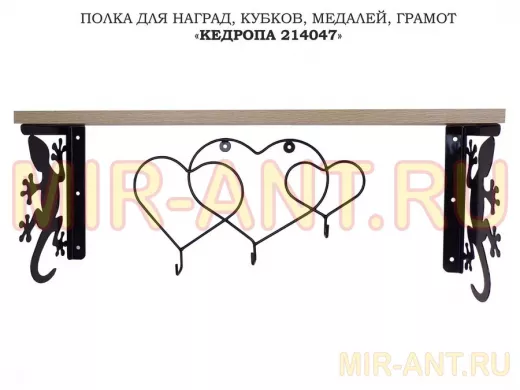 В корзину Купить в 1 клик Полка для наград, кубков, медалей, грамот "КЕДРОПА-214047 гекон"размер 15х60х24 см, дуб с сердцами