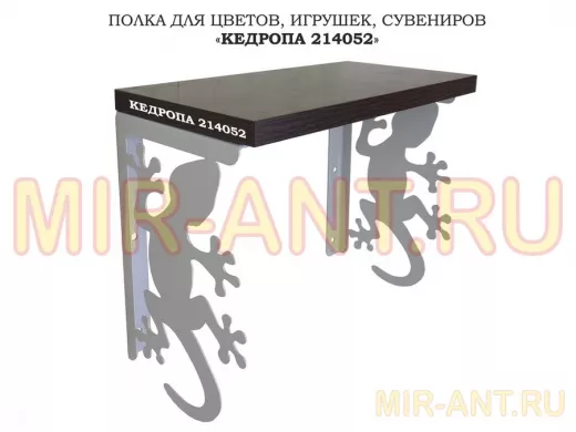 Полка для цветов, игрушек, сувениров "КЕДРОПА-214052 гекон" размер 15х30х24 см, серый, венге - MIR-ANT.RU